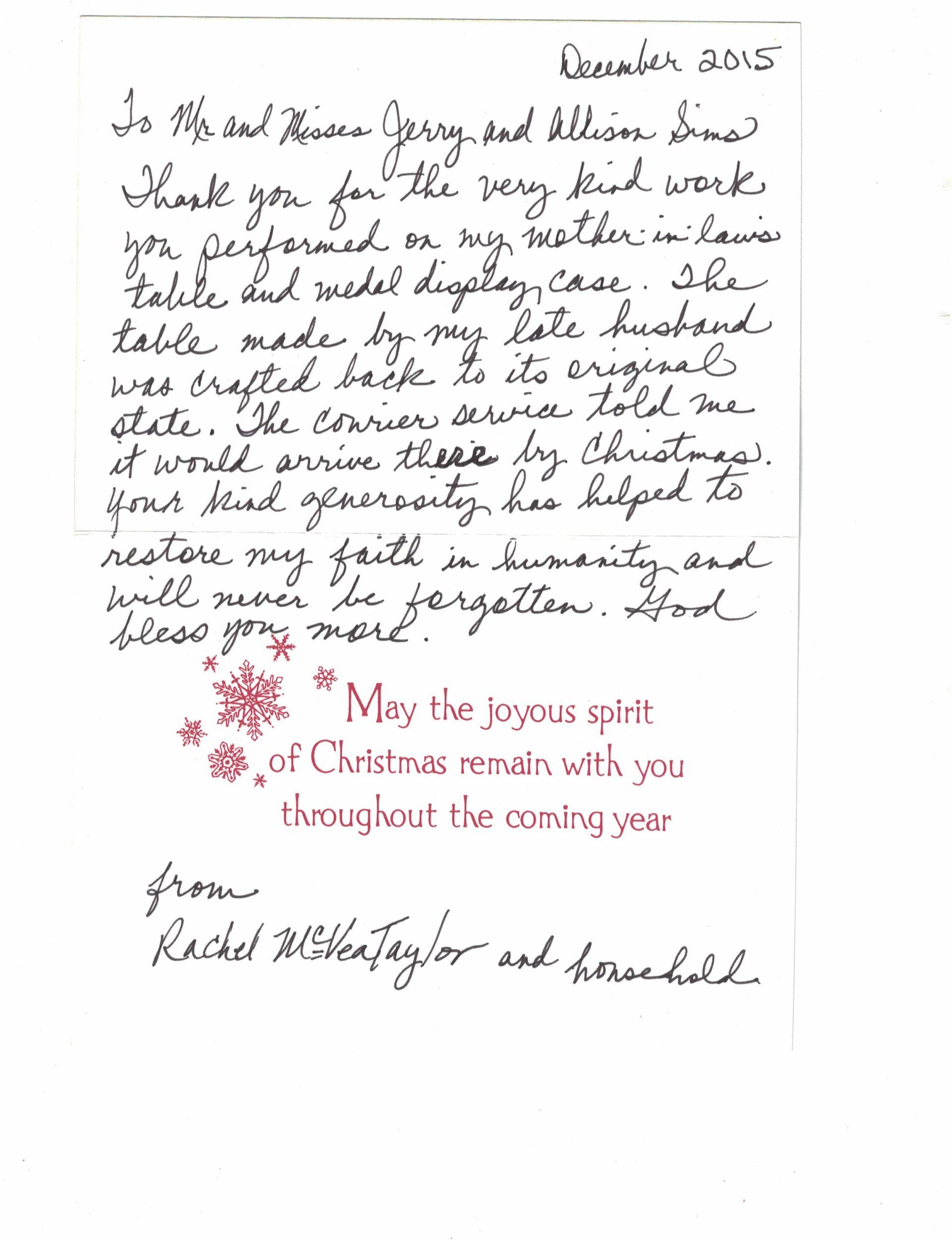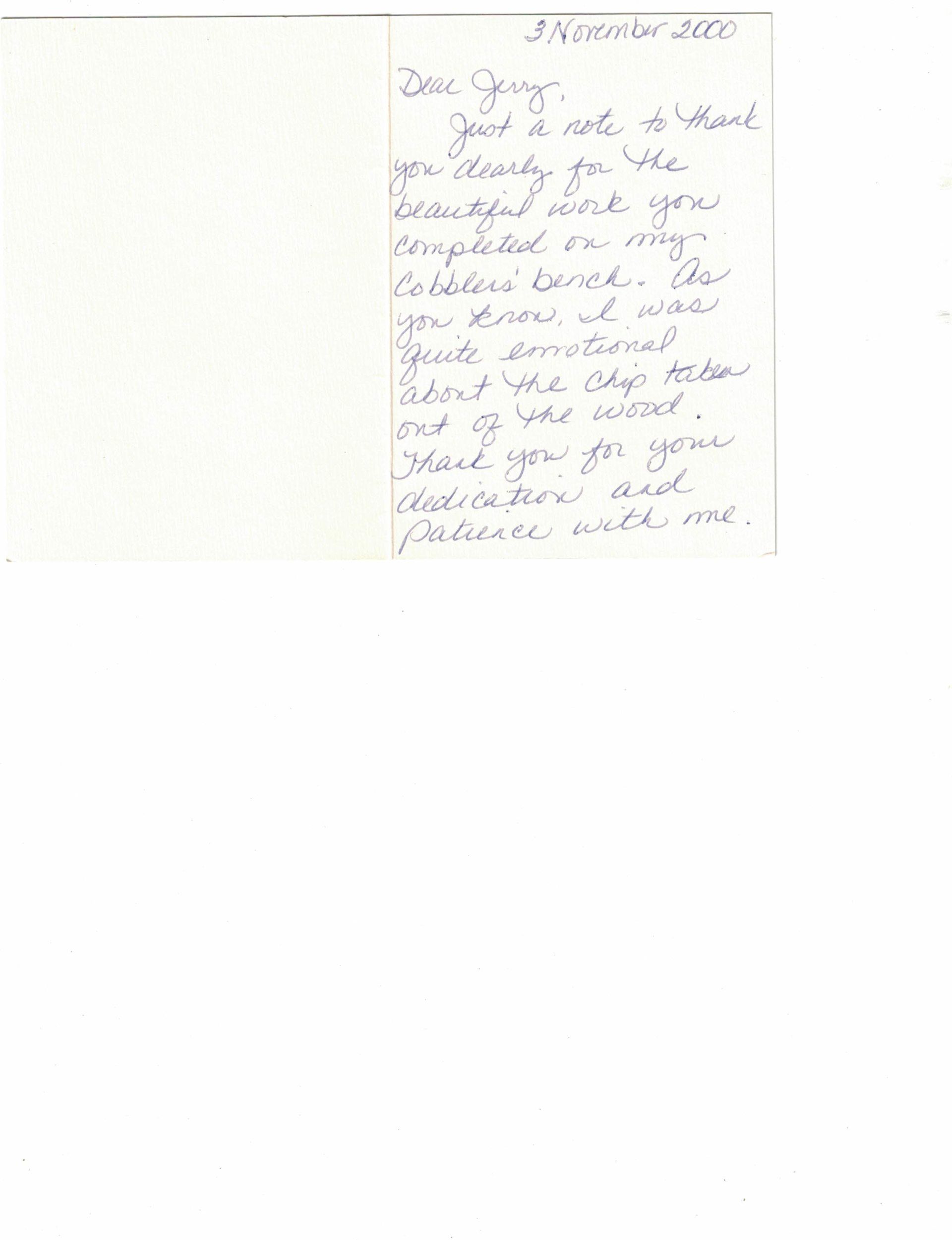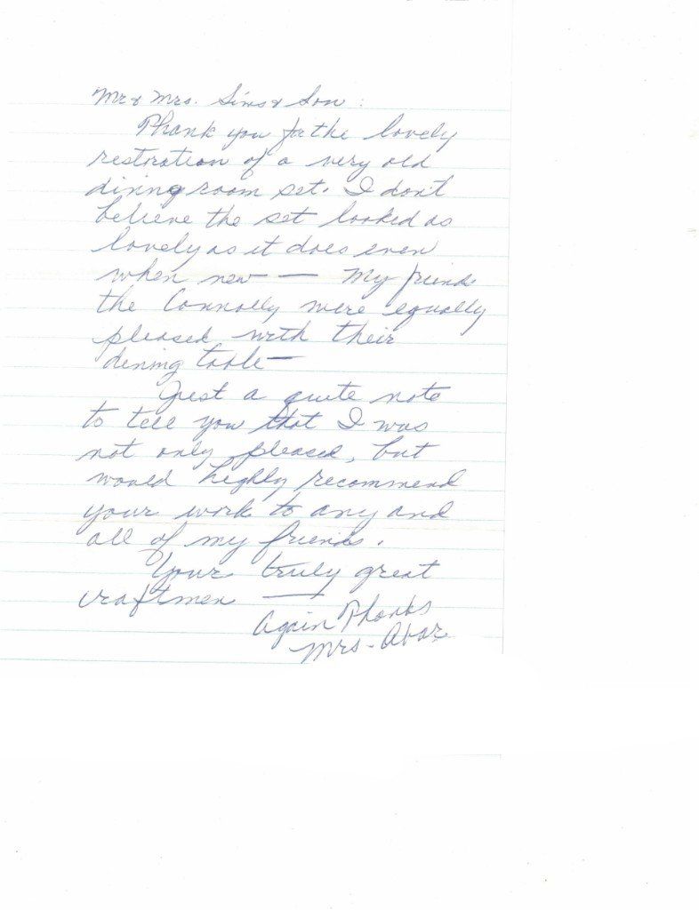 In July I took several pieces of family furniture to them for restoration. Since that time I have taken 2 additional chairs; and a bench & arm chair.The bench & arm chair are part of a set I purchased at an auction. They are most likely from the early to mid 1800's. When I went back to deliver the additional family pieces, they had almost finished the chair which goes with the set. I was just blown away when I saw it. It was like a miracle had occurred ! WOW what great work they do. And they take such pride in the work they do. It is so wonderful to see these old treasured pieces of furniture come back to life. Thank you !!!